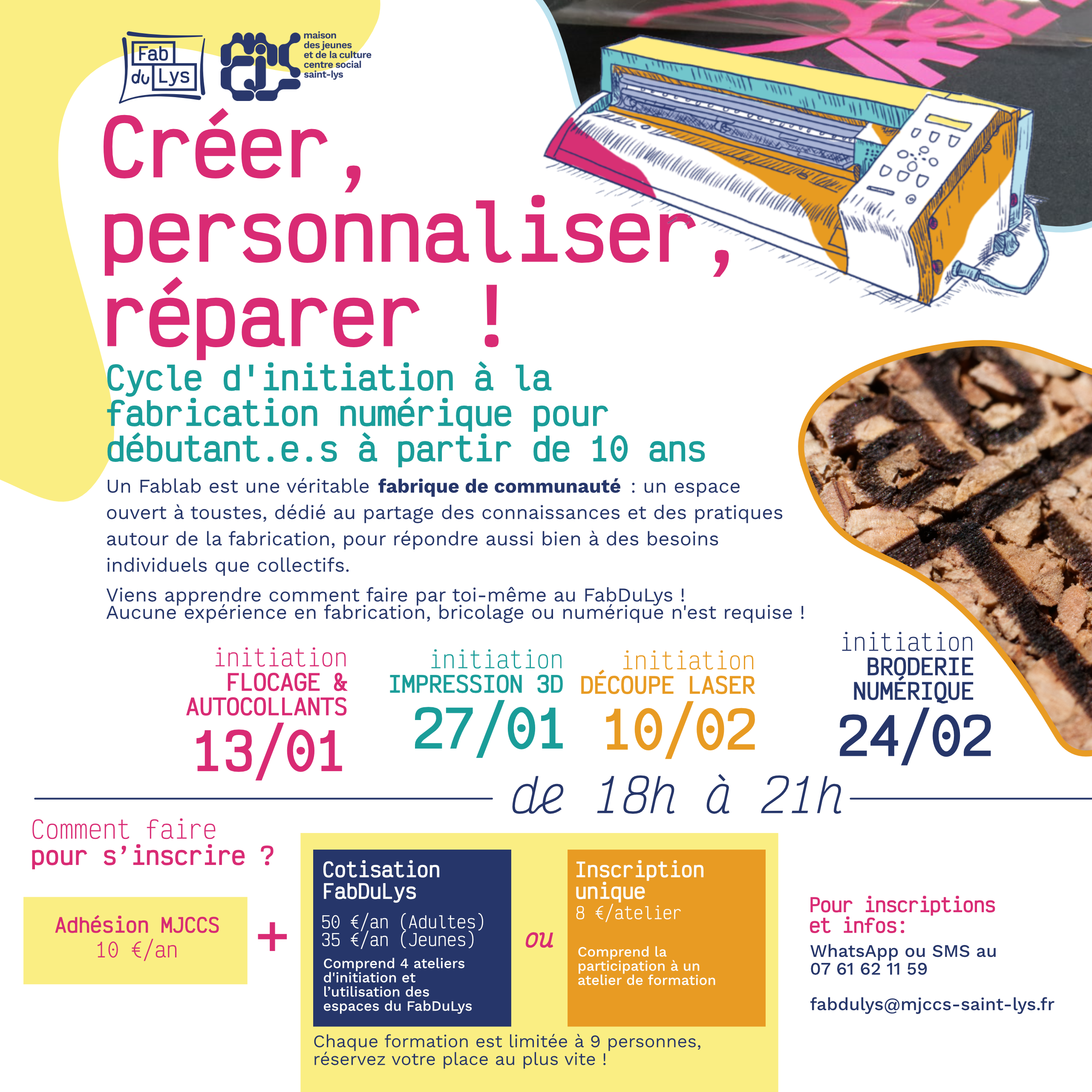📲Inscription par SMS ou WhatsApp au : 07 61 62 11 59 ou directement à l’accueil de la MJCCS