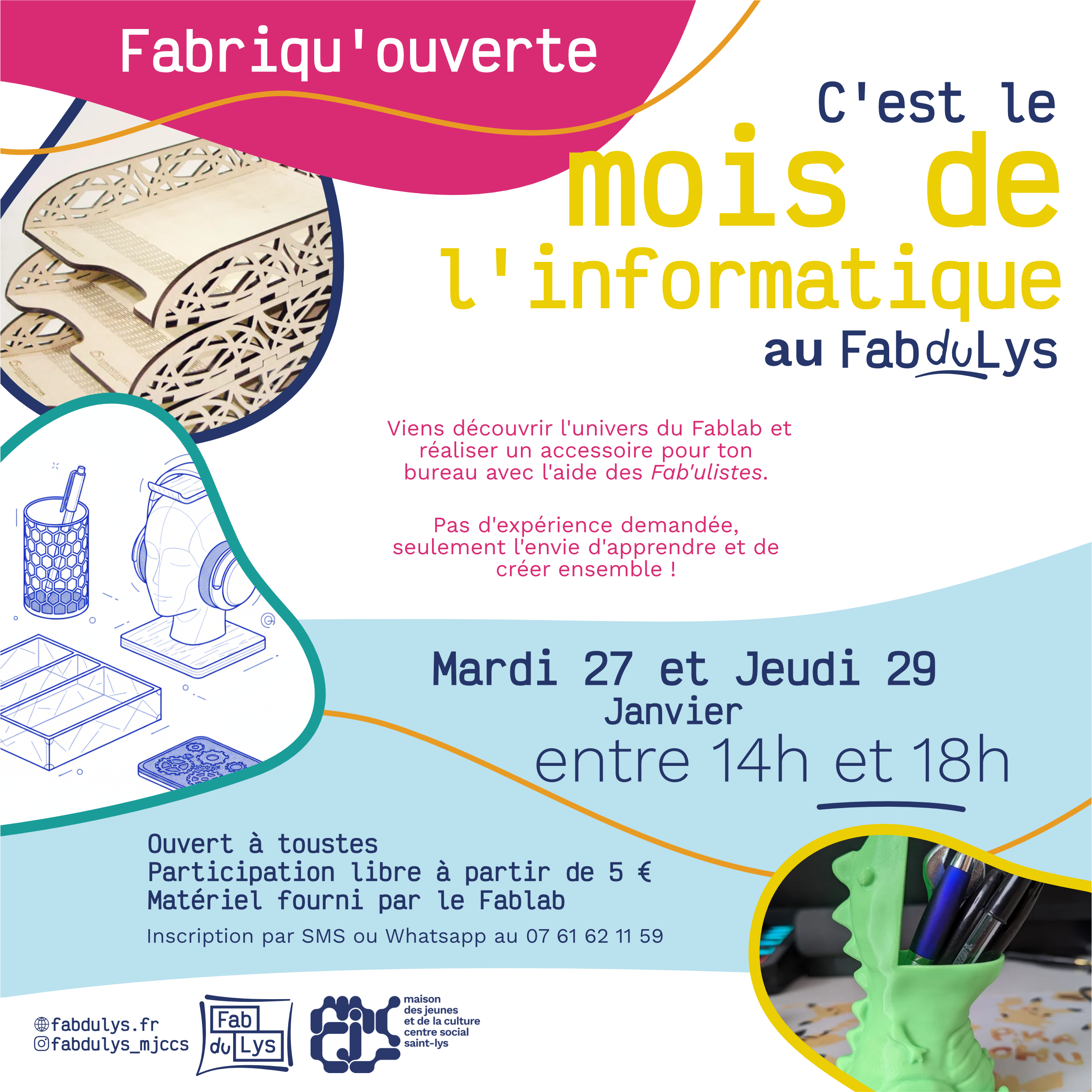 Une semaine par mois, le FabduLys ouvre ses portes pour permettre à toustes de découvrir ce que l’on peut y faire ! 💡