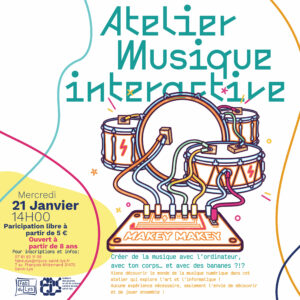 L’atelier est destiné au 8 – 14 ans. Les enfants de 8 à 10 ans doivent obligatoirement être accompagné d’un adulte.